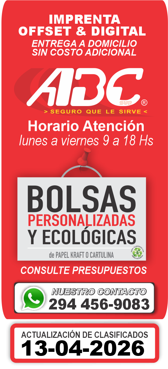 ABCsur no se responsabiliza por la veracidad de lo publicado, como asimismo informa que no percibe premios, ni comisión alguna por las transacciones que de su lectura se produzcan. ABC Sur se reserva el derecho de publicación de los avisos solicitados. Las imágenes son provistas por el cliente y son ilustrativas, no siempre corresponden al producto ofertado. Las ofertas y productos publicitados son hasta agotar stock y por tiempo limitado.